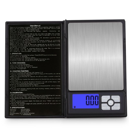 - Jest w stanie zważyć żywność czy cenną biżuterię a także inne produkty do 500g.