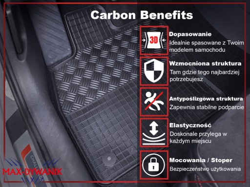 - Dopasowanie do samochodu: Mocowania są specjalnie dostosowane do marki/modelu, zapewniając idealne przyleganie dywanika do podłogi.