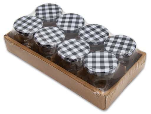 Kształt słoiczka przypominający baryłkę w połączeniu z wieczkiem w modną kratkę - to fenomenalny zestaw, który wpadnie w oko każdemu.
