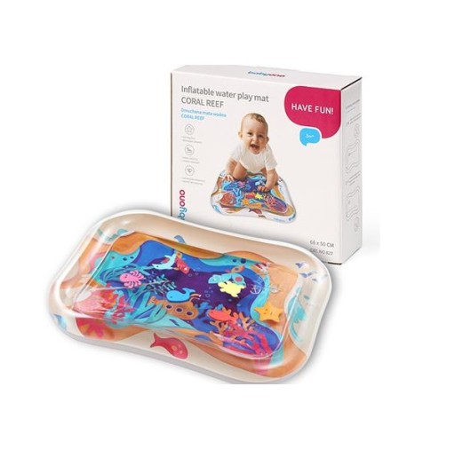 - Rozwój koordynacji ruchowej: od urodzenia lekarze nakazują kłaść niemowlęta na brzuszku w celu rozwoju całej postawy ciała dziecka. Mata wodna jest świetną alternatywą dla podłogi i zwykłych mat, ponieważ dodatkowo stymuluje dziecko poprzez ciekawość i zabawę. Nauka przez zabawę szybko sprawi, że Twoje dziecko będzie raczkowało i prawidłowo będą rozwijały się jego mięśnie, a postawa będzie nienaganna.