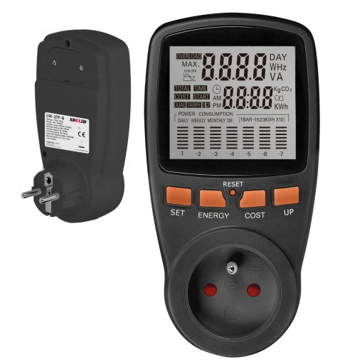 - nowoczesny watomierz pozwalający kontrolować zużycie energii urządzeń elektrycznych