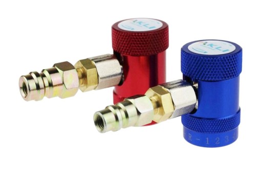 Komplet szybkozłączy na czynnik HFO R1234yf wraz z adapterami dzięki którym można podpiąć szybkozłączki :