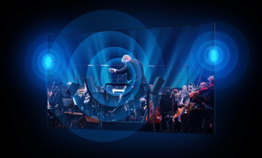 Dzięki technologii Acoustic Multi-Audio™ dźwięk zdaje się dobiegać z właściwego miejsca na scenie i znakomicie uzupełnia obraz. Wrażenie jest znacznie bardziej intensywne niż w przypadku standardowych telewizorów, w których źródło dźwięku znajduje się z tyłu, za ekranem.