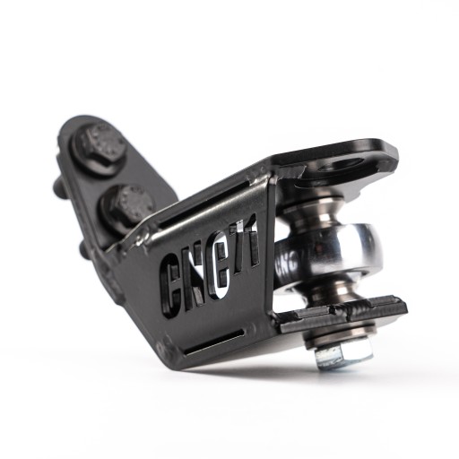 Skoro trafiłeś do nas to wiesz, że producent przewidział bardzo skromny maksymalny kąt skrętu przednich kół. Zmierzyliśmy - około 38 stopni na kole prowadzącym, jeszcze mniej na wleczonym. Nasze rozwiązanie pozwala osiągnąć około 60 stopni.