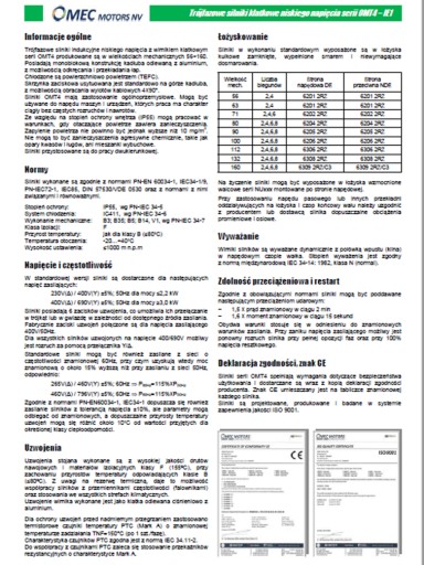 Uwaga! dostępne silniki z innymi obrotami (2 i 6 polowe)