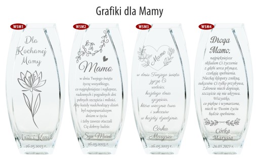 - Po zakupie prosimy wybrać wzór/numer grafiki (np. wzór z miniaturki lub W5_J1, itp.) który mamy wykonać oraz podaj swoje dane które chcesz umieścić na wazonie (tj. data, nagłówek, podpis). Ww. informacje prosimy wpisać w pole "Uwagi do zakupu" przy składaniu zamówienia