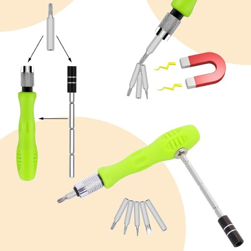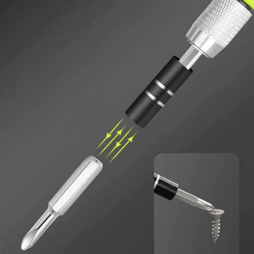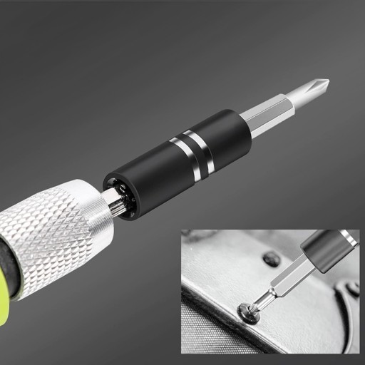 Końcówka na śrubokręcie jest bardzo wygodna podczas wyciągania śrub lub układania śrub w otwór. Szczególnie dla amatorów, magnetyzm poprawia wydajność i oszczędza czas.