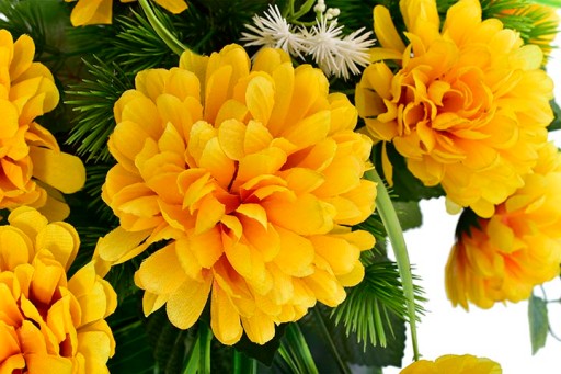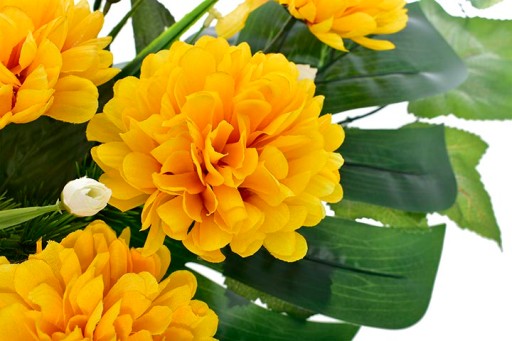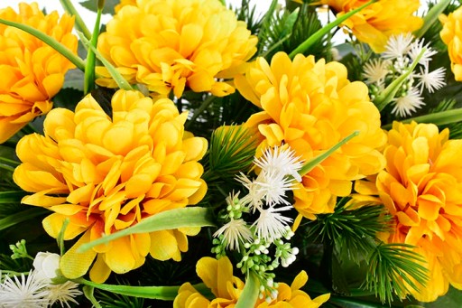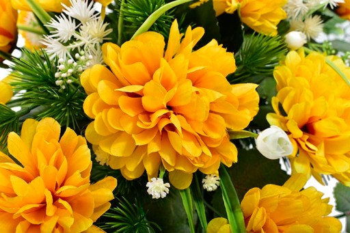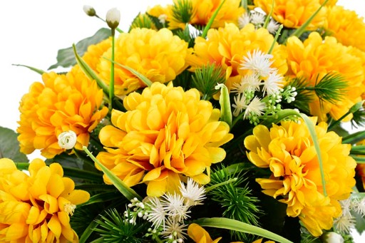 ✅ Dekoracja składa się z cudownych kwiatów chryzantemy oraz licznych białych i zielonych dodatków.