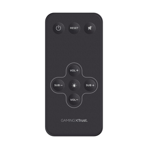 - W zestawie bezprzewodowy pilot do sterowania zasilaniem, głośnością, niskimi tonami i podświetleniem