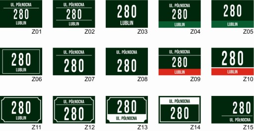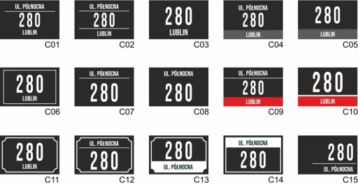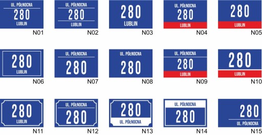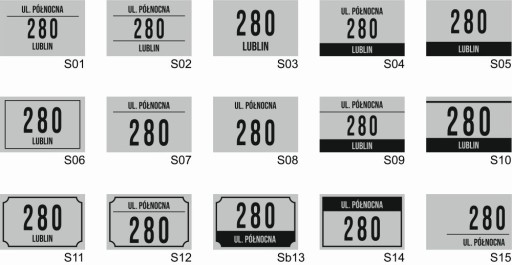 W miejscowościach, które posiadają ulice, place lub osiedla, na tabliczkach umieszcza się zarówno numer porządkowy, jak i nazwę odpowiedniej ulicy, placu lub osiedla. Natomiast w miejscowościach, które nie posiadają ulic, placów ani osiedli, na tabliczkach umieszcza się jedynie numer porządkowy oraz nazwę samej miejscowości.