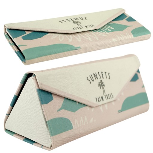 ✅ SKŁADANE NA PŁASKO ETUI NA OKULARY - PUDROWY RÓŻ Z MOTYWEM GRAFICZNYM - PALMY