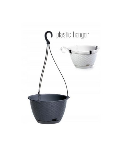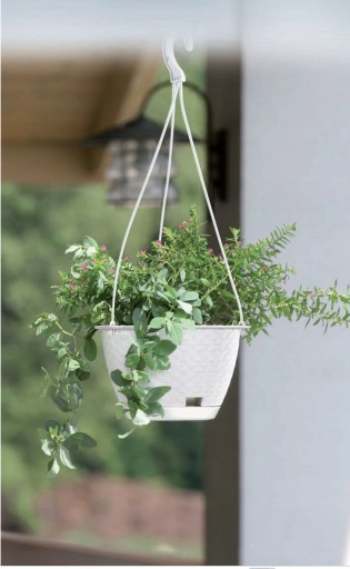 - Donica wykonana z tworzywa sztucznego przypominającego plecionkę rattanową