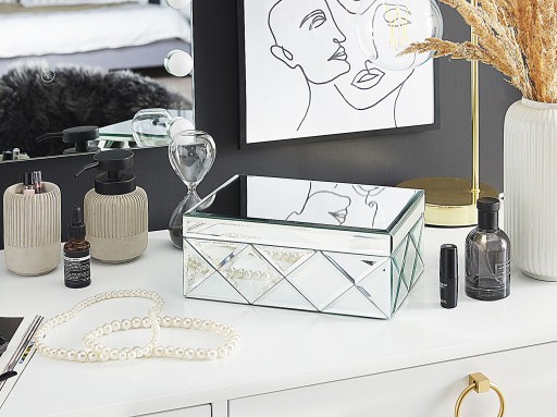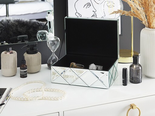 Lustrzana szkatułka to niezbędny dodatek do wystroju wnętrza każdego miłośnika stylu glamour. Poza eleganckim wyglądem jest niezwykle praktyczna. Organizer sprawdzi się do przechowywania biżuterii, świetnie prezentując się na toaletce czy komodzie.