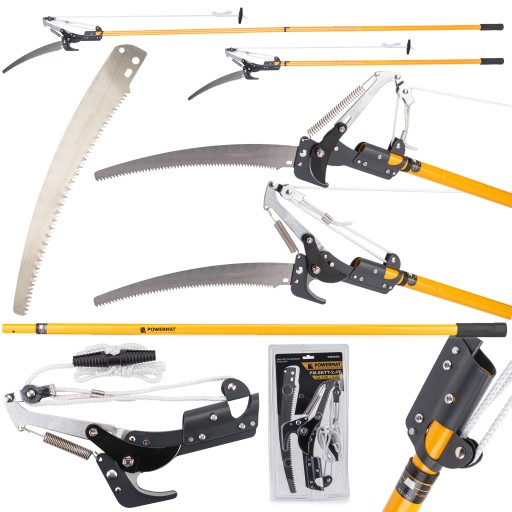 Nożyce na wysięgniku marki POWERMAT, ostrza wykonane są ze stali, która zapewnia odpowiednią twardość i umożliwia precyzyjne i łatwe cięcie. Nożyce służą do przycinania i pielęgnacji drzew na wysokości. Wysięgnik pozwala na dobranie najwygodniejszej pozycji do pracy.