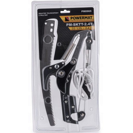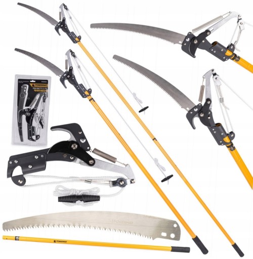 Produkt POWERMAT jest idealnym narzędziem do obcinania gałęzi oraz konarów wysoko położonych lub znajdujących się w trudno dostępnych miejscach. Dzięki gąsiennicowemu mechanizmowi uzyskujemy maksymalną siłę cięcia przy użyciu minimalnej siły. Uruchamianie sekatora następuje przez pociągnięcie linki z zamontowaną rękojeścią. Sekator służy do obcinania gałęzi i konarów o grubości do 30 mm na dużych wysokościach. Możliwe jest to dzięki konstrukcji sekatora, która pozwala na zamocowanie go na długim ramieniu, tyczce.