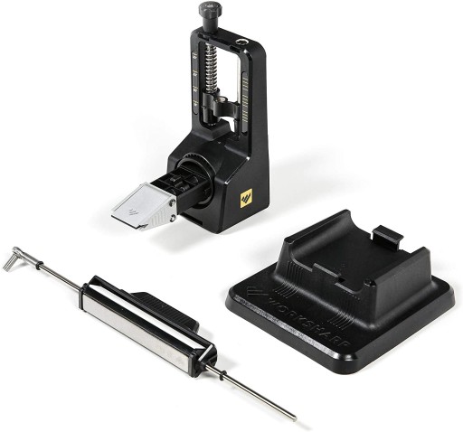 W Work Sharp Benchtop Precision Adjust znajduje się innowacyjny moduł ostrzący o nazwie Tri-Brasive, wyposażony w wbudowaną prowadnicę. Ten moduł oferuje trzy różne powierzchnie ścierne, które umożliwiają kompleksowe ostrzenie noży. Składa się on z dwóch płytek diamentowych o gradacji 320 i 600 do naprawy i właściwego ostrzenia oraz z drobnoziarnistego kamienia ceramicznego do polerowania i szybkiego podostrzenia.