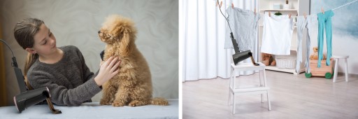 Suszarka posiada bardzo praktyczny uchwyt, który można wykorzystać w wielu sytuacjach dnia codziennego. Zastosowane rozwiązanie zapewni Ci najwyższy komfort podczas pielęgnacji twojego dziecka, czy pupila. Będziesz mógł z wykorzystaniem obu rąk czesać splątane włosy, nakładać odżywkę czy wykonywać inne czynności…a postawiona w pobliżu suszarka pozwoli na stylizację włosów bez konieczności trzymania jej w dłoni. Uwolnij obie ręce, aby stylizować, pielęgnować i dbać o włosy innych szybciej i łatwiej! Stabilny podnóżek będzie przydatny również w kryzysowych sytuacjach gdy chcemy szybko wysuszyć ubrania czy buty – nie musisz wtedy trzymać suszarki, masz wolne ręce i oszczędzasz swój czas.