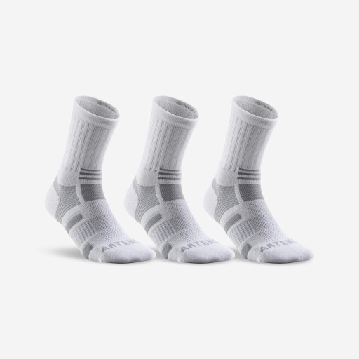 Dla średnio zaawansowanych graczy potrzebujących wygody i dobrego trzymania stopy. Dość grube skarpety zaprojektowane do uprawiania sportu. Elastyczna nić na całej stopie dla lepszego trzymania. Frotte i przewiewna siateczka mesh dla większego komfortu. Zestaw 3 par.