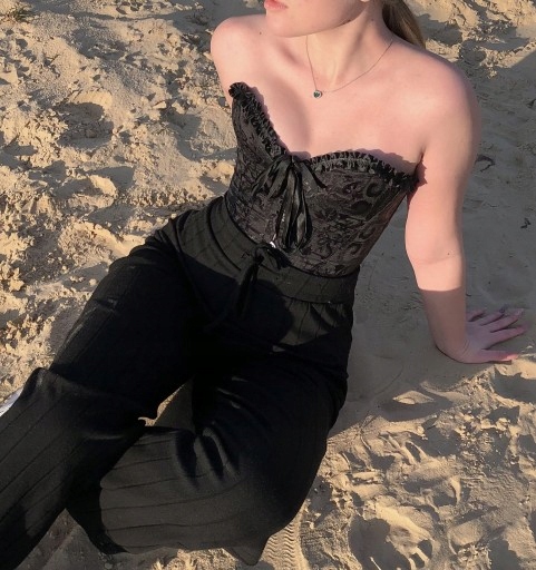 Koronkowy gorset OVERBUST wykonany jest z gęstej, wytrzymałej tkaniny z niedopowiedzianym kwiatowym wzorem. Konstrukcja wykonana jest z 12 solidnych stalowych pierścieni gorsetowych Od przodu zabezpieczony jest srebrnymi haczykami. Z tyłu posiada sznurowanie do regulacji (mocna, nierozciągliwa linka 0,5 mm) Może być używany nie tylko jako seksowny dodatek do bielizny, ale także jako elegancki dodatek do codziennych stylizacji. Podkreśla i podnosi biust Doskonale wyszczupla i podkreśla talię Efekt figury klepsydry Główny skład tkaniny: Polyester (poliester) Właściwości:ochrona talii,kształtowanie,zbieranie,tummy tuck,wsparcie dla piersi,regulowane