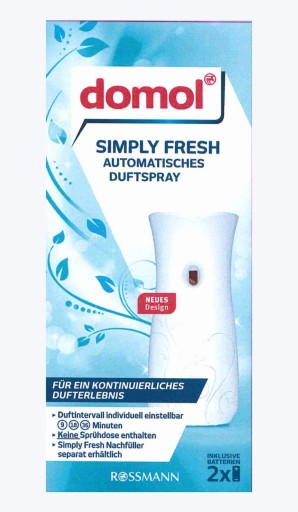 Automatyczny odświeżacz powietrza domol stosować wyłącznie z opakowaniami uzupełniającymi domol Simply Fresh. Nie stosować niezgodnie z przeznaczeniem.