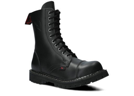 Proponowane 10-dziurkowe, czarne glany NAGABA 10H bosman skórzane zostały wykonane tak, by zapewniały najlepszy komfort. Wyróżniają się precyzją wykonania, zostały wyposażone w podeszwę wykonaną z prawdziwej polskiej gumy z ozdobnymi śrubami oraz metalowym logotypem marki. Dzięki temu świetnie sprawdzą się podczas wyjścia na koncert ze znajomymi lub wspólnego wypadu na miasto. Dodatkowe wzmocnienia w postaci stalowych nosków (ang. steel toe) i polska produkcja sprawiają, że przy odpowiedniej pielęgnacji będziemy mogli cieszyć się prezentowanymi czarnymi glanami NAGABA 10H bosman skórzanymi przez wiele lat. Z pewnością spełnią swoje zadanie na co dzień, dopasowane do stylowej kurtki i modnych dodatków.