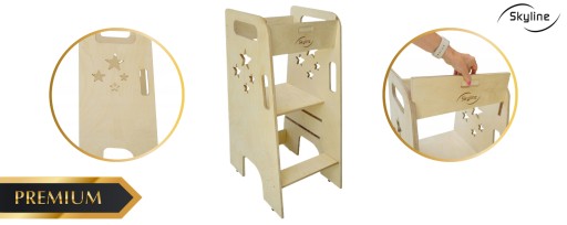 Jego konstrukcja umożliwia dzieciom bezpieczne uczestnictwo w codziennych czynnościach kuchennych na wysokości blatu, co sprzyja ich samodzielności i rozwojowi praktycznych umiejętności.