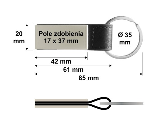 Breloczek do kluczy, połączenie metalu i skóry ekologicznej z możliwością wygrawerowania laserem Twojego tekstu / grafiki z naszej galerii po obu stronach części metalowej breloczka.