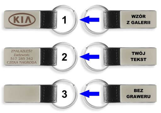 Grafika marki samochodu lub inna grafika z naszej galerii (dostępne wzory breloczków w dalszym opisie oferty)