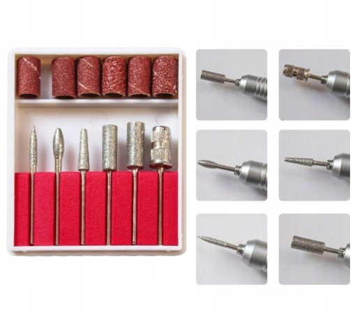 + Zestaw Frezów Diamentowych z Nośnikiem i Nakładkami do Pedicure