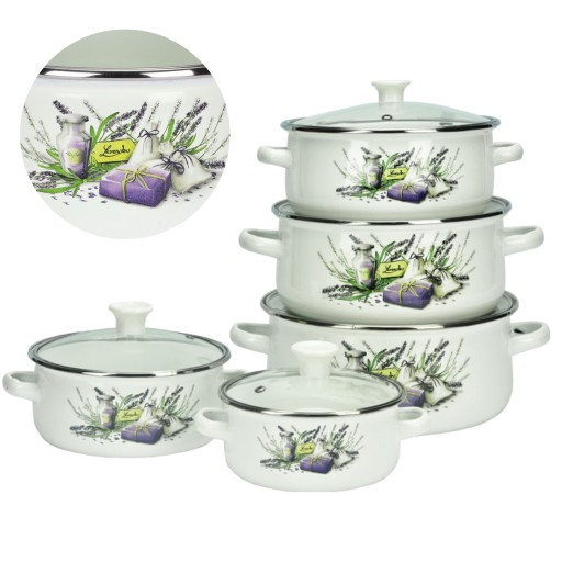НАБОР ИЗ 5 ЭМАЛЬНЫХ ГОРШКОВ, ЛАВАНДА, НАБОР 10 ШТ.