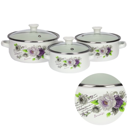 ZESTAW 3 GARNKÓW Z POKRYWKAMI EMALIOWANYCH RÓŻA 6EL KOMPLET