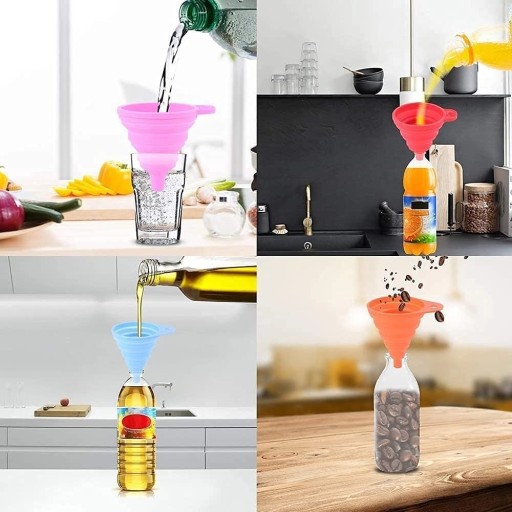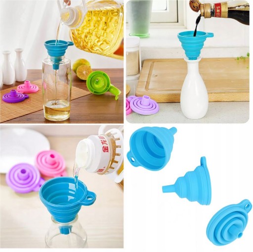 - Ponadto lejki składają się jak harmonijka w zupełnie płaski kształt. Zostały one wykonane z wysokiej jakości silikonu.