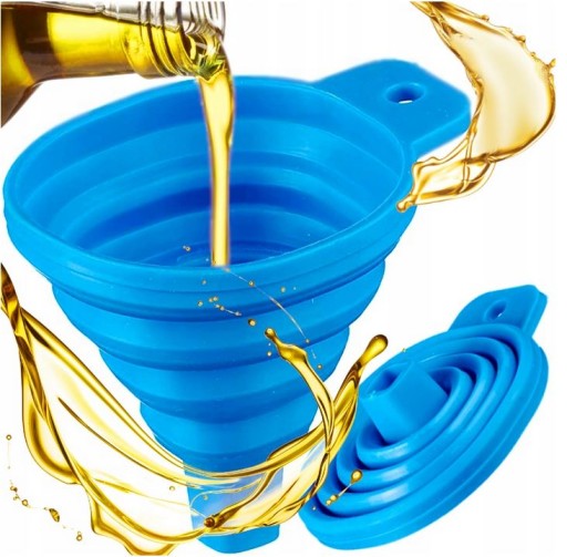 Zapomnij o rozlewaniu podczas uzupełniania wody, płynów, paliwa itp. Lejek składa się jak harmonijka, a po złożeniu przybiera zupełnie płaski kształt więc zajmuje bardzo mało miejsca. Możesz go przechowywać w schowku w samochodzie czy szufladzie.