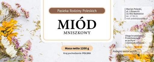 Indywidualny projekt etykiety na słoiki z miodem
