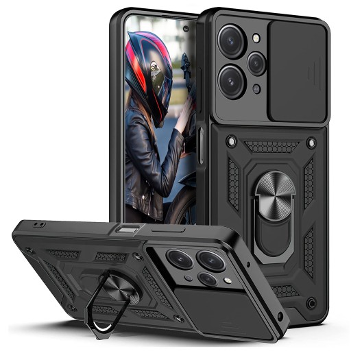 Чехол для Xiaomi Redmi 12 4G СДВИЖНОЕ КОЛЬЦО + 9H СТЕКЛО