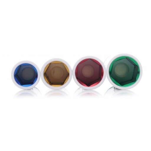 Końcówki nasadek wykończone chromowaną powłoką w różnych kolorach ułatwiających identyfikacje rozmiaru. Ponadto całość zapakowana w poręczną walizkę