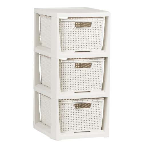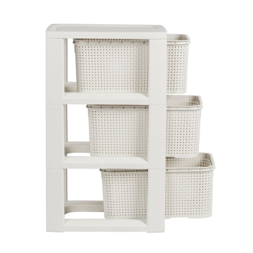 Trzyczęściowy regał Rattan jest bardzo dobrym rozwiązaniem do przechowywania w małych przestrzeniach. Wykonany bardzo estetycznie, z wysokiej jakości, bezpiecznego materiału (wolnego od ftalanów i bpa) jest idealny do takich pomieszczeń jak łazienka, garderoba, dziecięcy pokój czy domowe biuro. Produkt polski.