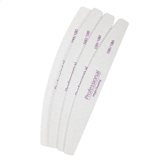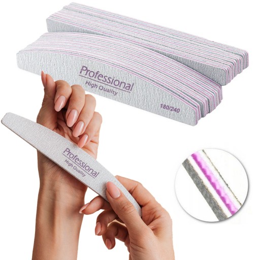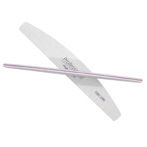 Jednorazowe pilniki do paznokci o gradacji 180/240, dedykowane do użytku profesjonalnego. Pilniki przeznaczone są do pracy z masą żelową i akrylową, zalecane do zabiegów wymagających efektywnego, a jednocześnie bezpiecznego opiłowywania, skracania, czy też do wstępnej obróbki paznokci.