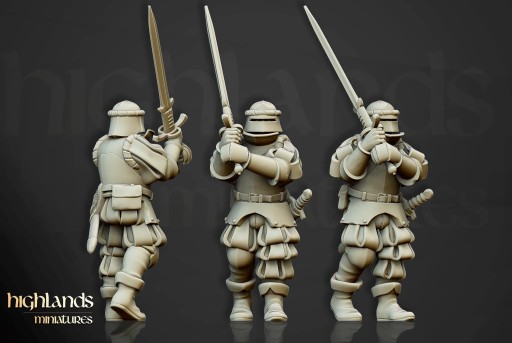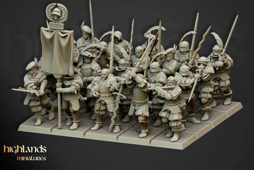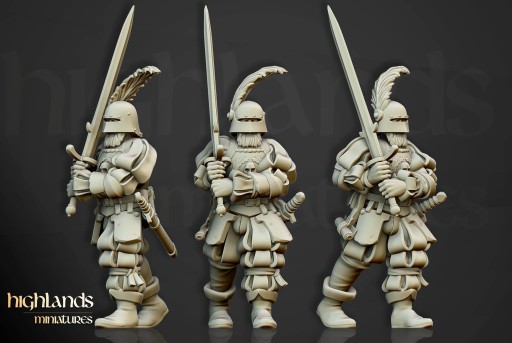 Oferujemy zestaw dziesięciu figurek Imperial Guard (Landsknecht of Sunland autorstwa Highland Miniatures), wydrukowany na drukarce żywicznej.