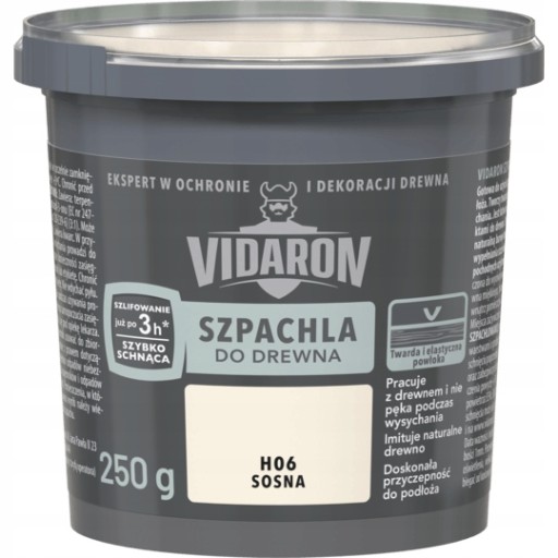 Szpachla do drewna VIDARON jest akrylową masą naprawczą, która została wyprodukowana z dodatkiem terpentyny – zapewniającej dobrą przyczepność masy do drewna oraz mączki kwarcowej – która odpowiada za odpowiednią twardość i możliwość obróbki masy po wyschnięciu.