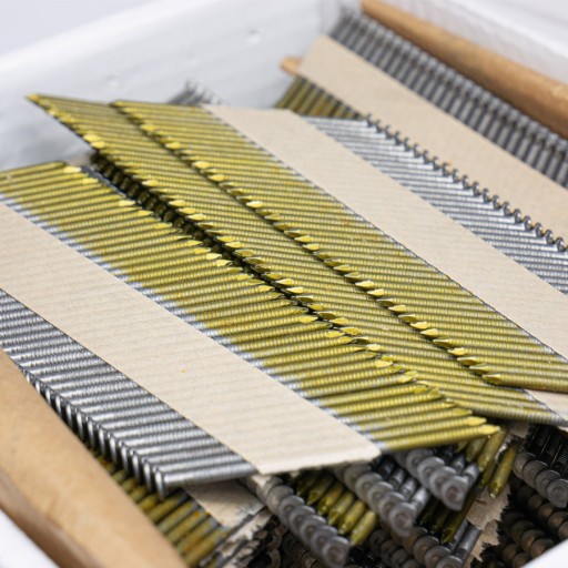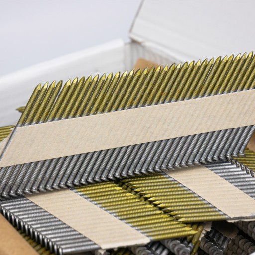 Gwoździe do gwoździarek pneumatycznych, gazowych i elektrycznych. Gwoździe łączone papierem pod kątem 34°