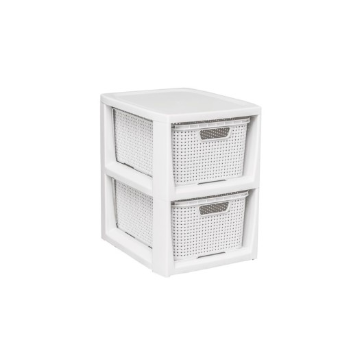 Regał Stojak z 2 koszami rattan Branq 1727 biel antyczna