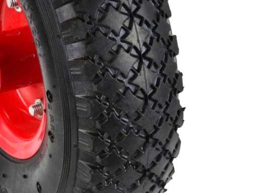 Koło do wózka pompowane 2-płócienne (2PR) o maksymalnym obciążeniu do 136 kg. Wytrzymała metalowa felga malowana proszkowo zapewnia podwyższoną stabilność. Całość wykonana z wysokiej jakości materiałów.