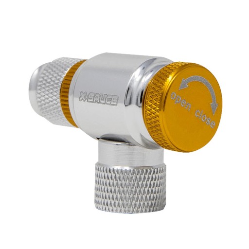 Pompka/Adapter X-SAUCE z regulatorem przepływu ciśnienia do pompowania opon na naboje gwintowane CO2. Wykonana z anodowanego aluminium i waży tylko 30g.