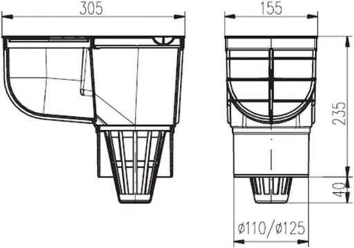 Osadnik rynnowy dolny z odpływem uniwersalnym DN110 szary CHUDEJ