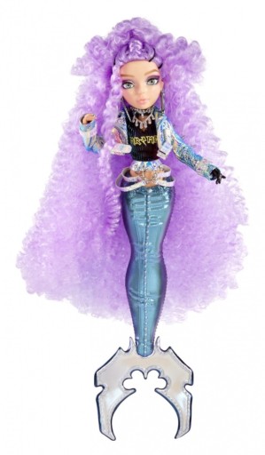 MAGICZNA SYRENKA - Poznaj podwodne życie Mermaze Mermaidz. Oto Riviera, piękna lalka o kształcie syreny ze wspaniałymi szklanymi oczami, rzęsami, fantazyjnym makijażem i kręconymi fioletowymi włosami z czarnymi mikro warkoczami