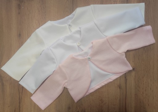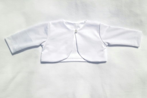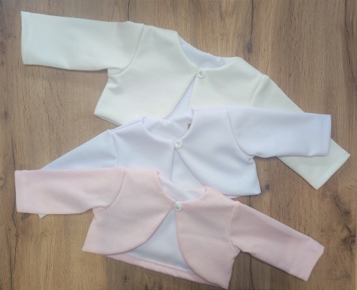 Bolerko niemowlęce z mięciutkiej dzianiny, na bawełnianej podszewce, zapinane na guziczek.