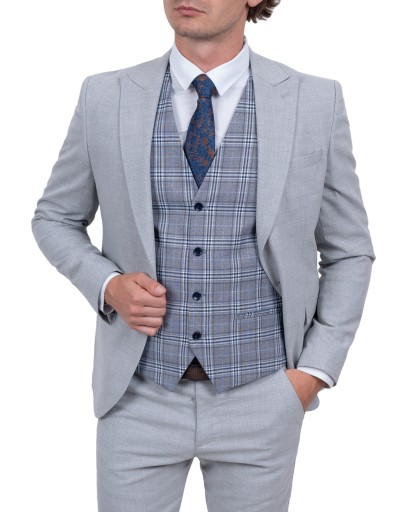 Серый мужской жилет в клетку + аксессуары - 48
