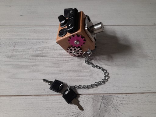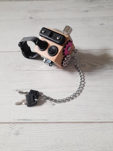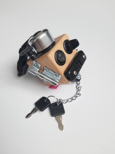 Kostka manipulacyjna EDUKACYJNA z przełącznikami zabawka drewniana podróżna