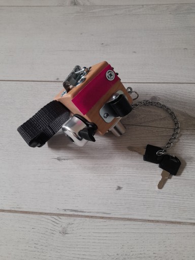 • zatrzask plastikowy (który nie tylko zainteresuje dziecko ale również umożliwi przypięcie kostki np. do wózka)